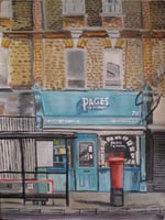 watercolour on A3 watercolour paper. This is a bookshop in Hackney London